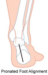 Chief Diagnostic Sign: You can test for pronation by looking at the leg and foot from the back. Normally you can see the Achilles Tendon run straight down the leg into the heel. If the foot is pronated, the tendon will run straight down the leg, but when it lies on the heel it will twist outward. This makes the inner ankle bone much more prominent than the outer ankle bone.
